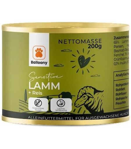 Sélection spécifique de protéines (agneau) des viandes individuelles soigneusement sélectionnées par goût réduisent le risque d'allergies et d'intolérances alimentaires pour faciliter la digestion.N'abîme pas l'estomac et faible en graisse notre variété d'agneau est particulièrement adaptée pour les poils sensibles. Notre agneau est considéré comme maigre, riche en vitamines et hypoallergénique.Soins intestinaux uniques certaines combinaisons de prébiotiques, d'oméga-3 et de vitamines favorisent une flore intestinale stable et sont idéales pour les chiens souffrant de ballonnements, de diarrhée et d'autres problèmes intestinaux pour augmenter le bien-être.Haute acceptation notre nourriture est non seulement bonne pour votre chien, mais aussi délicieuse. Balloony est particulièrement ulaire auprès des chiens difficiles et offre une solution nutritionnelle optimale qui ont besoin de soutien pour leurs intestins.Avantages supplémentaires Balloony est parfait pour les intestins, sans gluten, bon pour les problèmes de glandes anales, a un goût excellent, idéal pour les chiens malades, et est 100 % naturel pour une alimentation saine. Expédié depuis la France et arrive sous 7 jours. ...