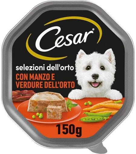 Les aliments pour chien Cesar sont 100 % sains et completsAliment humide pour chiens de la ligne Cesar C?ur de légumes et sélection du potager pour chiens adultesLes aliments pour chien Cesar C?ur de légumes et sélections du potager sont basés sur de délicieuses recettes et sont fabriqués avec des légumes soigneusement sélectionnésL'aliment pour chien ne contient ni colorants ni arômes artificielsBac de 150 g d'aliment pour chien dans un pâté tendre avec un c?ur délicat de légumes Expédié depuis la France et arrive sous 7 jours. ...