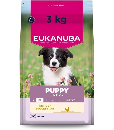 Pata-Eukanuba Life Care Croquettes Chiots Moyenne Race 1à 12 Mois, Riche En Poulet Frais, Croissance Optimale - Dha, Calcium, Oméga 3&6,; Prébiotiques Fos, Sans Colorants, Arômes Artificiels Ni Ogm ¿