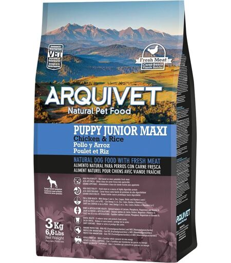 Pata-Arquivet Puppy Junior Maxi - Croquettes Pour Chiots De Races Grandes - Poulet Et Riz-3 Kg - Aliments Pour Chiens - Nourriture Sèche Pour Chiens