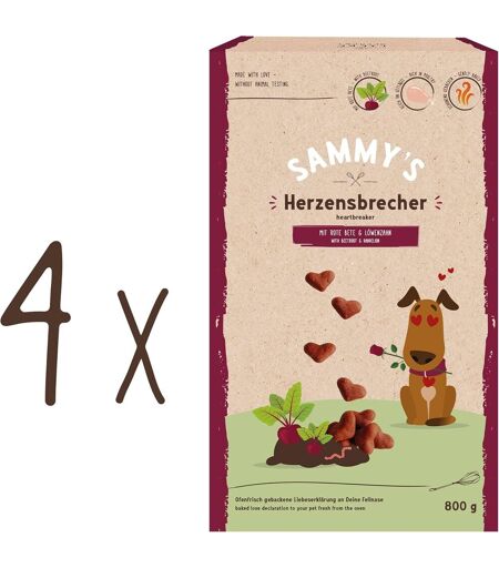 Pata-Sammy's Hezensbrecher Snacks Finement Cuits Pour Chiens Avec Betterave Rouge Et Pissenlit 4 X 800 G