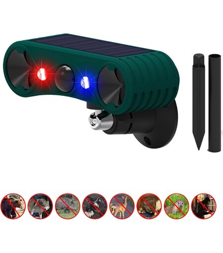 (Gardez vos familles en sécurité et dites adieu aux « explorateurs » indésirables) Effrayez les intrus de votre maison, et nous comprenons que cest un casse-tête que les « explorateurs » indésirables détruisent vos propriétés, il est maintenant temps de leur dire au revoir, rejoignez-nous(Extérieur et intérieur) Extérieur pour la ferme, létang, le verger, le jardin et plus pour effrayer les animaux, à lintérieur pour le hangar, la grange, lentrepôt pour effrayer la souris(Vous ne voulez pas les sons la nuit ?) 4 modes de fonctionnement en option,1) Lumières rouges et bleues clignotantes à ultrasons de 24 heures,2) Lumières rouges et bleues clignotantes à ultrasons la nuit,3) Lumières rouges et bleues clignotantes de son de 24 heures,4) Son clignotant rouge et bleu la nuit(2 voies dinstallation) Montage sur le sol ou le mur / clôture, hauteur de montage ¿9,8 pieds, le piquet, les boulons et les vis pour linstallation fournis dans la boîte(Ce que vous obtenez) 1) 1 * alarme de capteur de mouvement extérieur, 2) 1 * kit dinstallation, 3) Service après-vente de 24 mois et réponse au message 12 heures Expédié depuis la France et arrive sous 7 jours. ...