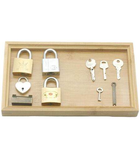 Puces:1. Apprentissage préscolaire: chaque serrure est équipée d'une clé, ce qui est suffisant pour jouer à des jeux assortis d'éducation précoce pour aider vos enfants à acquérir un sentiment d'accomplissement.2, jouet Montessori: les serrures de jeu assorties conviennent non seulement aux enfants d'âge préscolaire, mais aussi à ceux qui ont besoin de former de meilleures capacités motrices, car cette serrure Montessori peut aider sur les compétences pratiques, améliore également la coordination ¿il-main et la fonction motrice globale.3. large utilisation: ce verrou de jeu correspondant convient également aux personnes ayant des besoins spéciaux, car il est utile pour enseigner des compétences pratiques, améliorer la coordination des mains et les grandes fonctions motrices.4. Ensemble de jouets pratiques: votre enfant apprendra à faire correspondre les clés, en attendant, il peut améliorer sa motricité, en utilisant la clé correspondante pour ouvrir la serrure.5. Fonctions multiples: la serrure et le jeu de clés aident les enfants d'âge préscolaire à mieux pratiquer la motricité en apprenant à faire correspondre la clé pour ouvrir la serrure correspondante. Il peut également former et développer leur mémoire et leur cognition.Spécifications:Matériel: BambouApplication: L'éducation MontessoriTaille: montré comme imagesPoids: environ 0.3/0.45kgÂge recommandé: plus de 3 ansListe de colisage:5 x serrure et clé1 x Plateau En BambouNotes:Les produits de verrouillage en métal peuvent avoir des rayures, veuillez en être conscient avant d'acheter.En raison des effets d'éclairage et des angles de prise de vue, il y a une différence de couleur dans le produit, veuillez comprendre. En raison de la mesure manuelle, il y a une tolérance dans la taille du produit. ...