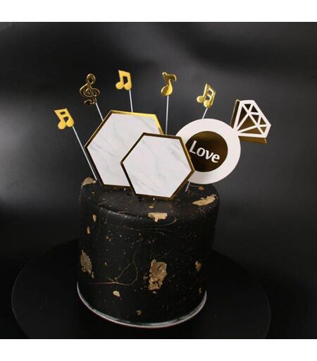 Garniture De Cupcake Style Marbre, Notes De Musique, Décoration De Gâteau En Diamant D'amour Pour Fête D'anniversaire Pour Enfants, Décoration De Gâteau De Mariage, 5 Ensembles