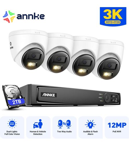 ANNKE 5MP Kit de Vidéosurveillance Exterieure 8CH NVR 4×Caméras Intelligente Double Lumière Vision Nocturne,Audio 2 Voies,Détection Mouvement,APP/PC