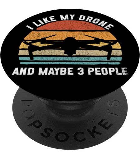 Drone design with the text: ""I Like My Drone And Maybe 3 People"". Le revêtement adhésif fixe le PopGrip à votre boîtier ou à votre appareil. Ne colle pas sur les boîtiers en silicone, en cuir, étanches ou très texturés. Fonctionne mieux avec les boîtiers lisses, durs et en plastique. Non compatible avec la charge sans fil. Le dessus imprimé est interchangeable avec d'autres modèles de PopGrip compatibles. Il suffit d'appuyer à plat, de tourner de 90 degrés jusqu'à entendre un clic et de le retirer pour l'échanger..La livraison depuis la France est prévue dans 5 jours ouvrés, n'hésitez pas à passer votre commande ...