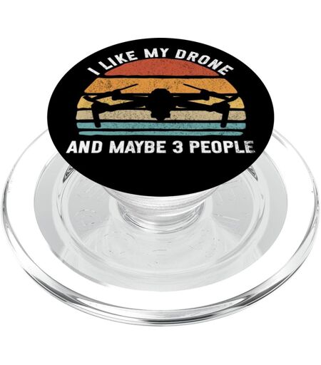 Drone design with the text: ""I Like My Drone And Maybe 3 People"". Se fixe et se détache magnétiquement de votre coque de téléphone, vous permettant ainsi de passer facilement d\u2019un accessoire compatible MagSafe à un autre. Anneau adaptateur inclus. Rendez n'importe quelle coque de téléphone compatible avec MagSafe en fixant l'anneau adaptateur. Une coque de téléphone est nécessaire mais non incluse pour utiliser le portefeuille. Le dessus imprimé est interchangeable. Fermez et tournez pour remplacer le dessus par un nouveau design compatible avec d'autres modèles PopGrip..La livraison depuis la France est prévue dans 5 jours ouvrés, n'hésitez pas à passer votre commande ...