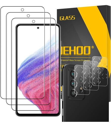 Verre Tremp¿¿ Pour Samsung Galaxy A53, [3+3 Pi¿¿Ces ] Vitre Protection D¡®¿¿Cran Et Protection Objectif Cam¿¿Ra, Sans Bulles Ultra R¿¿Sistant Hd Transparent Duret¿¿ 9h Glass