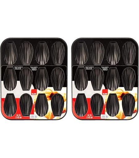 Kalanka-820502 Plaque De 12 Madeleines, Acier, Noir, 25,9 X 20,9 X 1,4 Cm (Lot De 2)-Kalanka