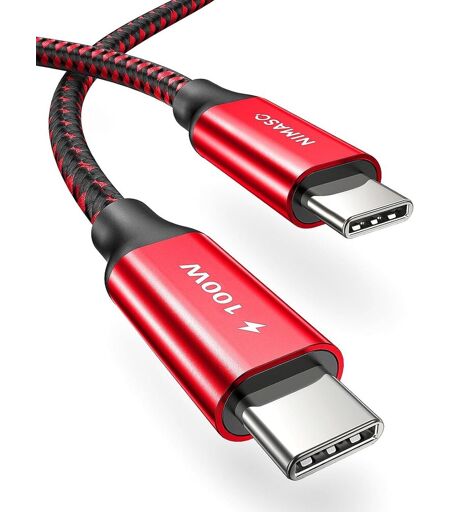 Charge Rapide et Data Synchro Ce câble de 100W utilise la dernière technologie Power Delivery. Capable de charger PC, téléphone et tablette équipés d'un port USB C . Il supporte jusqu'à 100W 20V / 5A de charge en sécurité! Il recharge complètement Nouveau Macbook 12"" en 2,5 heures. Pour les PC dont la puissance est plus de 60W, Utiliser ce câble la puissance de charge maximale de l'appareil PC peut être atteinte. Vitesse de transfert de données jusqu'à 480 Mbps des cable USB 2.0Chargement Plus Sûr Ce câble est muni d'une EMARK puce intelligente, le rôle des puces intelligentes est de fournir des courants et des tensions stables, Il maximise également la protection de votre appareil tout en chargeant rapidement. En plus d'offrir une expérience de charge confortable et rapide, il maintient également la sécurité de charge de votre appareil et réduit les pertes d'appareilAppareils Compatibles Câble USB C vers USB C est compatible avec les appareils équipés de port USB C iPad mini 6/Pro 11'' 12.9'' 2021/ 2018,, Macbook 12'' 2015 2016 2017, Macbook pro 13'' 2016 2017 2018, Macbook Air 2018, Samsung GalaxyS21 S21Ultra S21 S20 Note 10/ Note 10/ Note 9/Note 8/Note7, Huawei MagicBook 2018 2019/HUAWEI MateBook 13 14/P30/P30pro/P20/P20 lite/P20pro/Mate 20/P10 plus/P10 et etcIncroyablement résistant La gaine en Nylon tressé offre une protection supplémentaire pour éviter d''endommager le câble USB type c vers USB type c lorsqu'il est plié. La veste en nylon ultrasolide rend le câble résistant à plus de 10 000 flexions. Connecteur sans soudure et contacts dorés assurent une conductivité et une stabilité fiables et exceptionnelles. Conçus pour résister à plus de 10000 insertions, branchez et débranchez vos appareils sans aucun soucisRemarque Notre Câble est câble USB 2.0. Il prend en charge le transfert de données d'un téléphone mobile ou d'un disque dur vers un ordinateur, mais ne prend pas en charge le transfert direct du signal DP du Macbook ou du smartphone vers l'écran ...