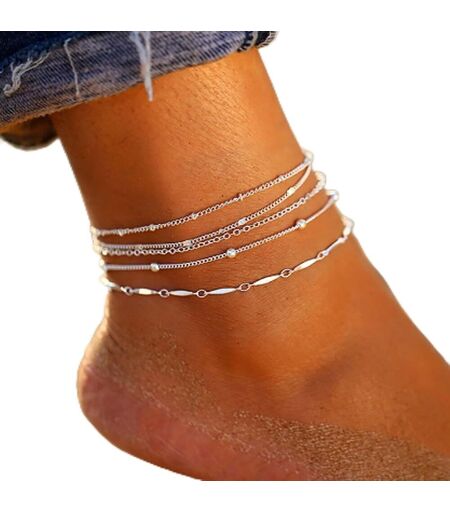 Kal-Bracelets De Cheville En Argent Avec Perles, En Couches, Pour Femmes Et Filles 5 Pcs