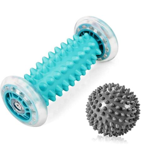 Réflexologie du Rouleau de Pied -- Le rouleau de massage des pieds et les boules pointues peuvent soulager la fasciite plantaire et être utilisés sur vos mains, avant-bras, épaules, dos, pieds, ischio-jambiers, etc. offrent un effet stimulant et augmente la circulation dans tout le corps.Fasciite Plantaire et Soulagement de la Douleur -- Ce bâton de rouleau musculaire adoptant la conception en arc, spécialement conçu pour soulager les douleurs et les douleurs aux pieds, en particulier pour la fasciite plantaire.Les boules pointues vous aident à faire rouler tout votre corps, ce qui permet un bon soulagement de la douleur.Matériau Sain et de Qualité -- Le rouleau de pied en matériau sûr, non toxique, sans odeur chimique, en TPR et PVC lavable et durable, ces balles de massage et rouleaux de pied sont conçus pour durer. Pas besoin d'assemblage et facile à utiliser.Recommandé par les Experts en Conditionnement Physique et Médical -- Ce rouleau de pied et cette balle de massage aident à soulager la douleur, à rajeunir et à revitaliser toutes les parties du corps, utilisés par divers professionnels de la santé et de la santé.Garantie de Satisfaction à 100% -- Votre satisfaction est notre priorité absolue. Si pour une raison quelconque vous n'êtes pas entièrement satisfait, nous vous rembourserons sans poser de questions! Ajoutez-le simplement au panier et soulagez la douleur..La livraison depuis la France est prévue dans 5 jours ouvrés, n'hésitez pas à passer votre commande ...
