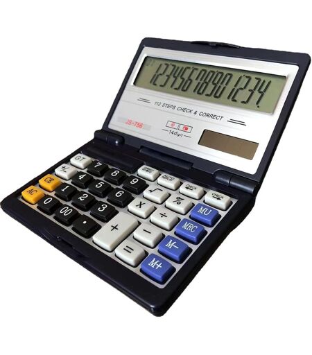 Calculatrice pliante avec grand écran 14 chiffres solaire et batterie double alimentation fonction de contrôle et correction Convient pour les finances commerciales et le bureau