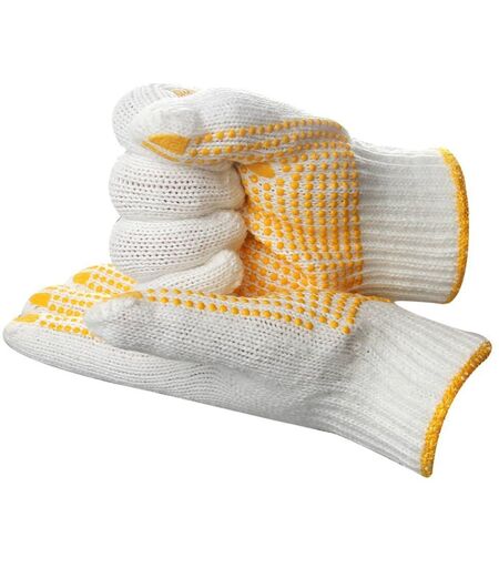 KALANKA-Lot de 2 paires de gants de travail blancs avec picots en PVC - Antidérapants - Respirants - Lavables - Gants tricotés en fil de coton - Gants de protection pour entrepôt, jardin, nettoyage