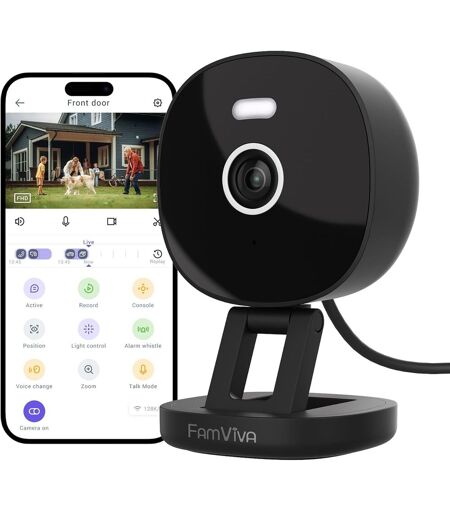 Caméra de sécurité domestique étanche IP65 et polyvalente : conçue pour la durabilité, notre caméra de sécurité Famviva 2K est étanche IP65, assurant une performance fiable sous la pluie ou la neige. Idéal pour une utilisation en extérieur et en intérieur, il est parfait pour garder un ?il sur votre chien, chat, animal de compagnie, nounou ou bébé, assurant une protection 24h/24 et 7j/7 pour vos proches. [Communication bidirectionnelle et détection de mouvement avancée] - Cette caméra de sécurité domestique est livrée avec un microphone et un haut-parleur intégrés, permettant une communication bidirectionnelle claire via l'application du téléphone. La caméra détecte instantanément les mouvements et envoie des alertes en temps réel à votre appareil. Si une activité inattendue est détectée, la lumière blanche brillante et l'alarme sirène s'activent automatiquement pour dissuader les intrus, offrant une meilleure protection pour votre maison. [2K Ultra HD et vision nocturne pour une clarté cristalline] - Profitez d'une résolution 2K nette et d'une vision nocturne en couleur, assurant des séquences claires même en cas de faible luminosité. Que ce soit comme caméra de sécurité intérieure ou extérieure, capturez chaque détail avec une clarté vive, gardant votre maison et vos proches en sécurité jour et nuit. [Cryptage vidéo de niveau entreprise et stockage sur carte Cloud/SD - La technologie de cryptage AES256 de classe entreprise garantit une transmission de données vidéo sécurisée et en temps réel et un stockage dans le cloud. Examinez, téléchargez et partagez vos données cloud sans aucune perte de données à tout moment. Il peut également prendre en charge une carte micro SD jusqu'à 128 Go (non incluse). [Installation facile et contrôle intelligent avec Alexa et Google Home] - Facile à installer sur les murs, les étagères ou les arbres, cette camara de seguridad para casas garantit une configuration de sécurité domestique sans effort. S'intègre parfaitement à Alexa et Google Home pour un contrôle mains libres : il suffit de demander à Alexa d'afficher votre caméra de sécurité intérieure sur un Echo Show. Résolution Crystal 2K et vision nocturne en couleur : cette caméra de sécurité 2K est conçue pour une utilisation en intérieur et en extérieur. Installez-le dans des zones telles que les cuisines, les salons, les crèches, les garages ou d'autres espaces pour améliorer la sécurité de la maison. Équipée d'une imagerie haute définition pendant la journée, la caméra extérieure capture des séquences claires, tandis que sa technologie de vision nocturne en couleur assure une visibilité dynamique à la tombée de la nuit. Cette caméra de sécurité extérieure offre une protection complète 24 heures sur 24 pour votre maison (il s'agit d'une caméra Wi-Fi filaire et non d'une caméra à batterie). Les produits internationaux ont des conditions de vente distinctes, sont vendus depuis l'étranger et peuvent différer des produits locaux, y compris la taille, la classe... ...