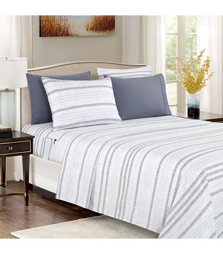 Parure de lit luxueuse 6 pièces pour lit King Size : 1 drap plat (259,1 x 266,7 cm), 1 drap-housse (198,1 x 203,2 cm) et 4 taies d'oreiller (50,8 x 101,6 cm). Drap-housse entièrement élastique avec bonnets profonds et quatre attaches supplémentaires, une dans chaque coin. Convient aux matelas d\u2019une épaisseur maximale de 40,6 cm. Ajustement parfait : notre drap-housse est entièrement élastique, garantissant un ajustement parfait qui l\u2019empêche de glisser de votre matelas. Il ne remonte pas et ne bouge pas au milieu de la nuit, reste lisse et sans plis. Le drap-housse convient aux matelas jusqu'à 40,6 cm d\u2019épaisseur et dispose de poches de rangement double face pour ranger vos accessoires lorsque vous vous couchez. Idée cadeau parfaite pour vos proches. Nombreuses couleurs au choix ; parure idéale à offrir en toute occasion. Nos draps-housses disposent de bonnets profonds et s'adaptent facilement aux matelas d\u2019une épaisseur maximale de 40,6 cm. Idéal pour les hommes et les femmes, les mamans et les papas, les vacances, les anniversaires, les pendaisons de crémaillère, etc. Doux, confortable et abordable. Certifié Oeko-Tex Standard 100 : tous nos produits sont conformes à la norme Oeko-Tex Standard 100. Conformément à cette certification, nos articles sont testés afin de détecter les substances nocives et sont fabriqués de manière écologique et socialement responsable. Chaque lot de tissu fait également l\u2019objet de tests portant sur diverses caractéristiques de durabilité telles que l'absence de boulochage, le faible niveau de rétrécissement, la résistance à la décoloration, etc. Ils sont ensuite cousus, inspectés individuellement pour vérifier qu\u2019ils ne présentent pas de défauts, et enfin, emballés pour la vente. Entretien facile : des draps propres et frais permettent un sommeil optimal. Nous vous recommandons de laver vos draps Elegant Comfort avant la première utilisation. Lavage en machine à froid avec des couleurs similaires sur cycle délicat. Séchage à basse température pour éviter d\u2019abîmer les draps..La livraison depuis la France est prévue dans 5 jours ouvrés, n'hésitez pas à passer votre commande ...