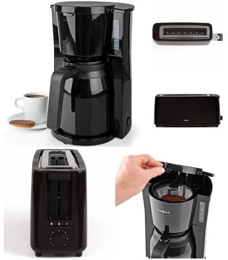 Livoo Cafetière Machine À Café Electrique Isotherme Noire 1.5l 900w + Grille-Pain Noir Longue Et Large Fente 900w Pas Cher