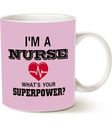 Funny Nurse Coffee Mug Christmas Gifts, I'm A Nurse What's Your Superpower Unique Nurses? Day Gifts Ceramic Cup Pink, 11 Oz