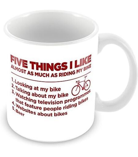Five Things I Like Bike Funny Gift Mug, Ceramic, White, 11 Oz By Kingam