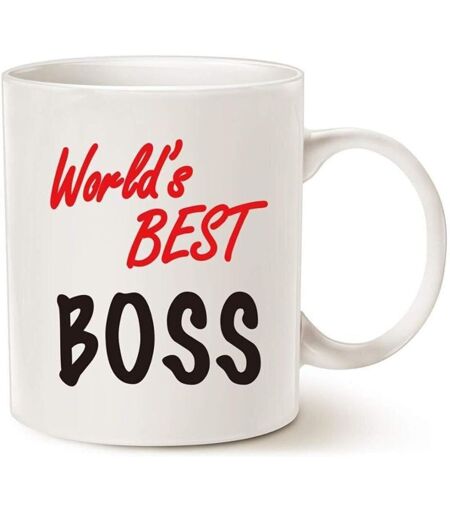 Christmas Gifts World's Best Boss Funny Coffee Mug For Boss Day White 11 Oz, Work And Office Holiday Or Birthday Present For Wor