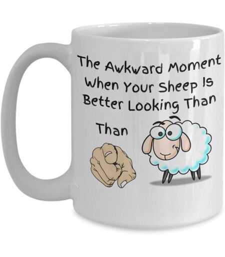 Farm Life Coffee Mug 11-The Awkward Moment When Your Sheep Is Better Looking Than You