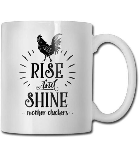 Funny Quotes Mug With Sayings - Rise And Shine Mother Cluckers Chicken Themed Gifts, Rooster Kitchen Decor - Gift Idea Coff Mug Ceramic White 11 Oz
