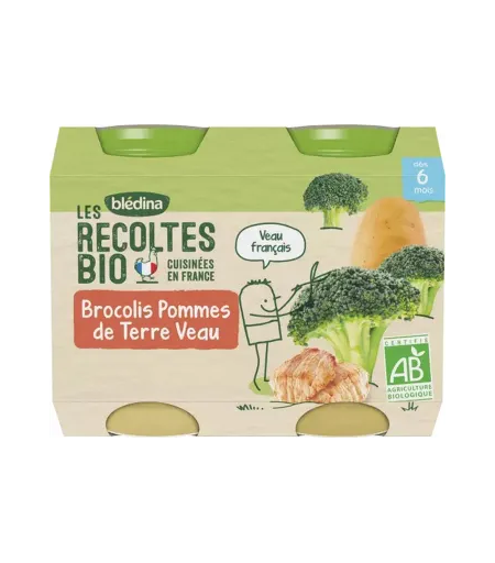 Parapharmacie > Bébé & Maman > Alimentation bébé > Repas bébé > Petits pots bébé Blédina Les Récoltes Bio Petits Pots de Brocolis Pommes de Terre Veau 200 g x 2