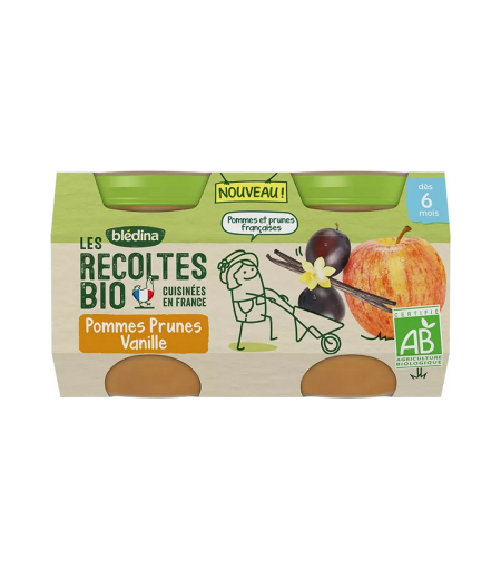 Parapharmacie > Bébé & Maman > Alimentation bébé > Repas bébé > Petits pots bébé Blédina Les Récoltes Bio Petits Pots Pomme Prunes Vanille 2 x 130 g - Petits pots bébé - Pharmacie en ligne LaSante.net