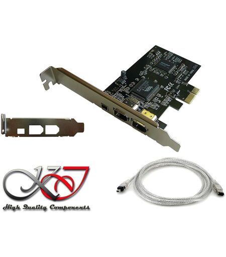 Pour PC DE BUREAU sur port PCI EXPRESS 1X. Permet de rajouter 3 ports FireWire 400 sur votre PC de bureau. - Compatible avec toutes les versions de Windows 2000/XP/Vista/Seven/8/10 ...... (les pilotes VIA sont intégrés dans la bibliothèque Windows !). - CHIPSET VIA VT6306. Pour ports PCI EXPRESS 1x (1.0a). Compatible IEEE1394-1995, 1394a-2000 et OHCI 1.1. Vitesse de transfert jusqu'à 400 MBps - 2 Ports externes 6 points + 1 Port externe 4 points. 2 EQUERRES FOURNIES : LOW ET HIGH PROFILE - Article neuf, vendu emballé sous boite - vendue avec un cordon FireWire (4 mâle / 6 mâle) ...