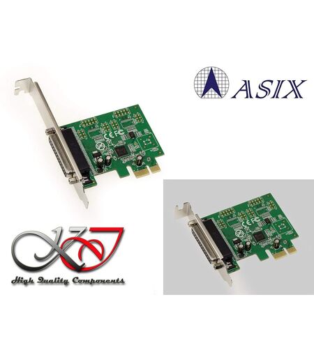 Pour PC DE BUREAU sur port PCI EXPRESS 1X. Permet de rajouter un port parallèle sur votre PC de bureau.Compatible toutes cartes mères, tous périphériques parallèles. Pilotes inclus pour WINDOWS XP, Vista, Seven, 8.x, 10, Linux Kernel 2.6.15 et récents, Android 1.x/2.x/3.x/4.x/5.x.. - CHIPSET ASIX99100 - Port PCIe 1x (PCIe 2.0) - Un port parallèle sur fiche DB25 - Compatible PCI Power Management, legacy ou MSI interrupts, ASPM - Compatible avce les modes 1284-SPP / Byte / ECP - SUPPORTE UN FONCTIONNEMENT EN AMBIANCE CHAUDE JUSQU'A 70°C / CARTE FOURNIE AVEC EQUERRE HIGH PROFILE ET EQUERRE LOW PROFILE ...
