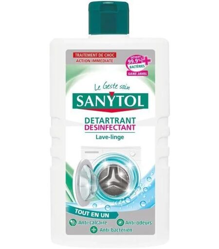 Le détartrant SANYTOL pour lave-linge élimine 99.9% des bactéries - Sa formule Tout en Un nettoie, désinfecte, détartre et désodorise votre machine, tout en prolongeant sa durée de vie. ...