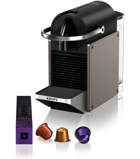 Krups Pixie XN306T10. Type de produit: Cafetière à dosette, Type de cafetière: Semi-automatique, Capacité du réservoir d'eau: 0,7 L, Type d'entrée à café: Capsule de café, Réservoir de café: Tasse, Capacité en tasses: 1 tasses. Puissance: 1260 W. Couleur du produit: Noir, Titane. Capsule de café incluse ...
