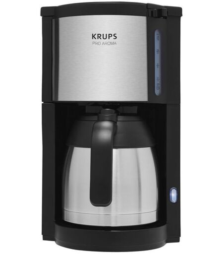 Grâce à la machine à café PRO AROMA ISOTHERME de Krups, appréciez un délicieux café, grâce à son contrôle précis de la température pour une extraction du café optimale. Son pot isotherme en inox maintiendra votre café au chaud jusqu'à 4 heures après la fin du cycle. Sa capacité de 8 -12 tasses, son niveau d'eau visible à l'avant seront d'une grande praticité. Sa fonction anti-goutte permet de verser le café, même pendant le cycle de café. Son porte-filtre pivotant et amovible ainsi que sa fonction arrêt automatique vous faciliteront la vie au quotidien. ...