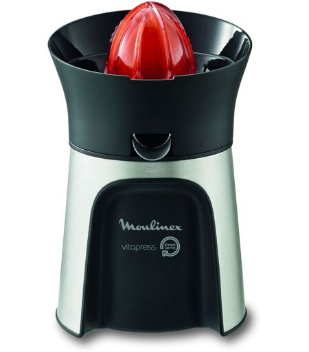 Une extraction totale jusqu'à la dernière goutte grâce au design spécifique de chaque cône Trois cônes polyvalents pour profiter de tous les types d'agrumes Presse-agrumes pour les citrons, tangerines, mandarines, oranges, pamplemousses et bien plus encore Système anti-goutte pour un jus servi directement dans le verre sans dégâts Design compact pour le rangement et cônes empilables Simple d'utilisation, avec fonction marche/arrêt automatique quand le fruit est pressé Le presse-agrumes polyvalent pour des résultats parfaits jusqu'à la moindre goutte Le presse-agrumes Vitapress Direct Serve de Moulinex vous sert de délicieux jus d'agrumes acidulés directement dans votre verre, grâce à trois cônes polyvalents spécialement conçus pour des résultats parfaits jusqu'à la dernière goutte. Cet extracteur de jus électrique haute performance permet de presser tout type d'agrumes (citrons, tangerines, mandarines, oranges, pamplemousses et bien plus encore), grâce à des commandes simples, une fonction marche/arrêt automatique lorsque le fruit est inséré, et un rangement compact, le tout dans un design moderne et élégant. ...