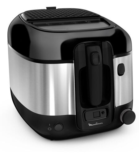 De délicieuses frites au quotidien, comme vous les aimez, c'est la promesse de la friteuse Super Uno AM316D10 de Moulinex. Saine et polyvalente Déguster de savoureuses frites et aliments frits en quelques instants, c'est possible avec la friteuse Super Uno AM316D10 de Moulinex. Avec un réservoir confortable accueillant jusqu'à 2,2 litres d'huile, l'appareil cuit jusqu'à 1,6 kg de pommes de terre pour en faire de délicieuses frites croustillantes pour toute la famille. C'est l'appareil idéal pour varier les repas et ravir vos convives. Réalisez de délicieux plats croustillants à souhait avec votre Super Uno AM316D10. Des pommes de terre aux légumes, la friteuse Super Uno AM316D10 met à votre disposition toute la performance de Moulinex pour concocter de délicieuses recettes, mais aussi pour faciliter votre quotidien : la cuve, le panier et le couvercle de l'appareil sont lavables au lave-vaisselle pour un entretien simplifié jour après jour ! Conçu pour le quotidien Moulinex conçoit ses appareils avec l'expérience utilisateur au coeur de ses préoccupations. Résultat, avec Super Uno AM316D10, vous avez entre les mains un appareil pratique à l'utilisation simplissime : un système de filtration à charbon vous débarrasse des odeurs et des émanations. Le plus : le filtre à charbon de l'appareil est lavable et réutilisable ! Pensé pour faciliter votre quotidien jour après jour, l'appareil Super Uno AM316D10 dispose d'éléments conçus pour vous faciliter la vie : un hublot vous permet de contrôler la cuisson d'un coup d'oeil. Compacte et légère, votre Super Uno AM316D10 se range et s'intègre dans tous les intérieurs et toutes les cuisines. ...
