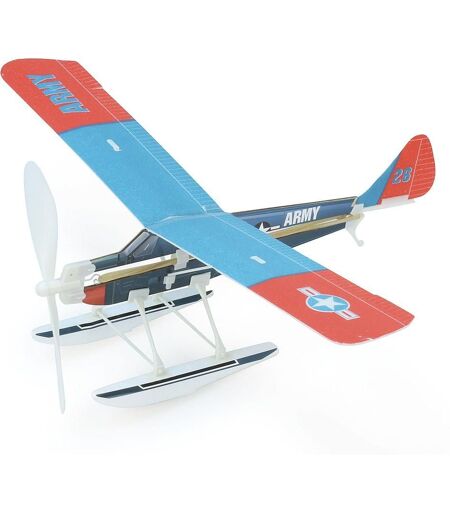 Petit avion en bois, plastique et polystyrène à construire soi-même. Prêt en quelques minutes, sans colle. La force de l'élastique fera tourner l'hélice. Longueur environ 25 cm. ...
