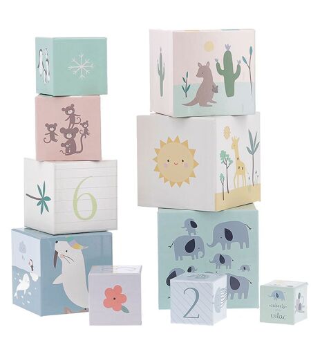 10 cubes gigognes en carton, illustrés avec douceur par l?illustratrice Sarah Betz. Dès 2 ans, les enfants découvrent de nouvelles notions pour apprendre à trier par taille, empiler, encastrer, observer et compter. Sur chaque cube, les enfants découvrent un animal différent. Sur les autres faces, on retrouve son environnement, un nombre, etc. Empilés les uns sur les autres ...