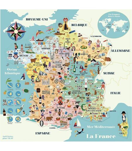 Dimensions: 50x44x1 CM âge: 5+ matière: bois contient 92 pièces design Ingela P. Arrhenius Carte magnétique de la France avec des pièces en bois pour une exploration géographique amusante En France, il y a de belles montagnes, des rivières, de la mer et de l'océan. Mais aussi de grandes et petites villes, des sites célèbres comme la Tour Eiffel et d'autres endroits un peu moins connus, mais tout aussi intéressants. Îles voisines, régions et beaucoup de symboles avec une signification claire La carte capture également la gastronomie française, le vin et le champagne! Conception Ingela P Arrhenius Caractéristiques principales: Contient 1 carte et 92 pièces de puzzle Conception Ingela P Arrhenius Angelina D Arrhenius L'artiste suédoise Ingela Peterson Arrhenius est née en 1967 L'art et le design ont toujours eu une place dans sa vie et avant le début de sa carrière d'illustratrice, Ingela elle a travaillé comme directrice artistique à Stockholm Puis elle a étudié la publicité et design graphique à l'école d'art également à Stockholm. En 1992, elle a commencé son entreprise en tant qu'illustratrice indépendante et a travaillé à l'international dans la publicité, le design, l'édition.. Dans le passé, elle a créé des motifs d'impression pour les tissus, le papier peint, la papeterie, a également travaillé sur l'Emballage, la Conception de produits, les Accessoires pour la maison et les jouets Ses affiches et ses jouets de créateurs peuvent être trouvés partout dans le monde Elle a une passion pour le style rétro, ce qui se voit clairement dans leurs uvres, mais aussi dans son enthousiasme pour la typographie et les couleurs Elle vit maintenant à Stockholm avec son mari et ses 2 fils. ...