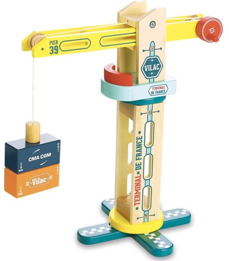 Sur le port, c'est l'effervescence ! Un cargo est amarré, il ne restera pas très longtemps à quai, il faut se dépêcher à le décharger.... Vite allez cherchez votre grue, elle est parfaite pour accomplir rapidement ce travail. Sur le terminal, tout le monde se sait manier cette grue. Vous êtes le meilleur des grutiers, alors prenez les commandes. Contenu de la boîte : - 1 grue. - 2 blocs en bois magnétique (containers). Les blocs en bois magnétiques n'attendent que vous pour passer du ponton au quai ou inversement ! Soyez efficace et rapide... Vous pourrez compléter les éléments de votre port en retrouvant tous les articles de cette gamme sous la désignation : Villacity. Longueur de la grue : 28 cm. Hauteur de la grue : 34 cm. Pied de la grue : 18.5 cm. Age minimum : 3 ans ...