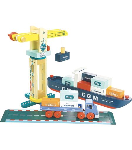 Camion Porte-containeurs CMA-CGM de la marque VILAC. Si vous trouvez que les cubes en bois manquent d'originalité, ce jouet en bois VILAC est fait pour vous ! Les enfants s'amuseront à décharger et recharger les containers en bois. Les cubes sont aimantés, ils pourront être soulevés et manipulés avec la grue Vilac (réf. 2357, vendue séparement), puis transportés avec le bateau Vilac (réf. 235 ...