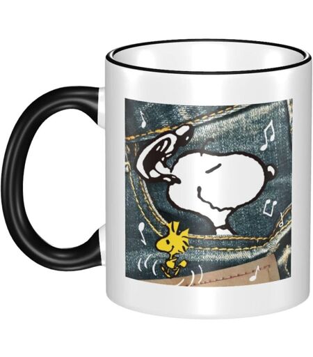 Snoopy Woodstock Anime Mug Résistant À La Chaleur Et Au Froid Grande Capacité 330 Ml Tasse À Café Poterie Céramique Tasse De Petit Déjeuner Personnage Cadeau D'anniversaire Noir