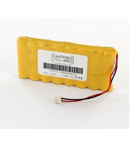 Batterie 9.6V compatible pour VISONIC Powermax Pro Pour Visonic Powermax Pro 0-100318 0-100953 0-100319 0-101131 0-100714 Système de secours d'urgence sans fil AMBER visonic GP220AAH8BMX, GP180AAH8BMX, 103-300672 0-9912-G Le système PowerMax Pro est alimenté par secteur, mais comprend également une batterie de piles 9,6V Il est important de remplacer les piles dès parution du message indiquant la panne correspondante : CPU BATTERIE FAIBLE Remplacement des piles Ouvrez le couvercle du logement des piles. Insérez le bloc de 8 piles et reliez son connecteur à la prise du PowerMax Pro. POUR LES DOUBLES BLOCS DE 8 PILES : Insérez les deux blocs de piles et reliez le connecteur de l'un d'eux à une prise du PowerMax Pro et celui du second à l'autre prise. ...