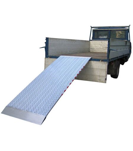 UTILISATIONS - Rampe de chargement idéale pour charger et décharger des engins et véhicules de poids léger à moyen comme des motos, tracteurs tondeuses ou matériel de jardinage. - Dans le secteur logistique pour la manutention de marchandises avec un transpalette. - Le chargement d'engins ou outils légers pour le milieu du bâtiment lors de travaux de construction. - Sur une exploitation agricole (écuries, élevage ou ferme) pour le transport de nourriture ou de déchets végétaux. CARACTERISTIQUES - Rampe de chargement d'une largeur de 800mm. - Rampe sans rebords d'une épaisseur de 40mm. - Languette de série sur la tête de rampe pour un maintien parfait. - Rampe de chargement perforées pour une adhérence optimale. - La perforation de la rampe permet d'évacuer facilement l'eau, la boue ou encore la neige. - Rampe livrée avec notice d'utilisation et certificat de conformité. - Rampe recoupable sur demande. - Les capacités de charge sont indiquées pour un empattement de 750 mm. OPTIONS ...