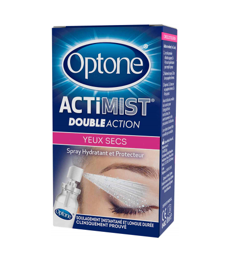 Optone Actimist 2en1 Spray Oculaire Yeux Secs et Irrités 10 ml lutte contre le style de vie moderne, c'est-à-dire le travail prolongé sur ordinateur par exemple, ou encore la climatisation. Ces phénomènes peuvent fragiliser et altérer la couche lipidique du film lacrymal de l'oeil provoquant une sensation de sécheresse et d'irritation.Le liquide lacrymal est un liquide physiologique aqueux et salé qui s'écoule à la surface externe de la cornée et de la conjonctive de l'oeil. Lorsque l'écoulement se fait en dehors de l'oeil, il forme des larmes.Ce spray va réparer la couche lipidique protectrice naturelle de l'oeil afin de réduire la perte d'hydratation. Il est cliniquement prouvé pour soulager instantanément les symptômes des yeux secs et irrités jusqu'à 4h. ...