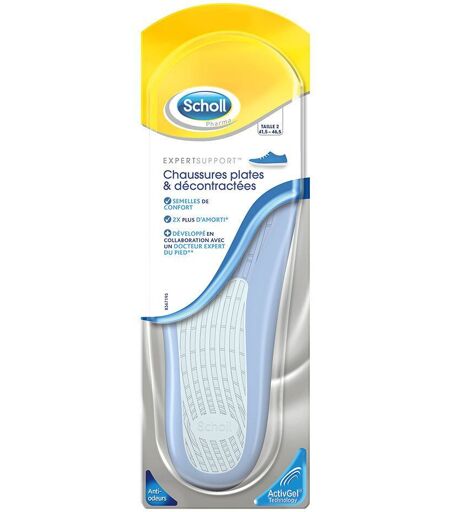 Convient à toutes vos chaussures préféréesChaque chaussure est unique. Et comme vous en avez tellement, Scholl a trouvé une solution de confort pour chacune de vos chaussures préférées, qu’elles soient plates, ouvertes ou à talons.BénéficesChaussures plates et décontractéesLa semelle idéale pour des chaussures décontractées et plates, comme les baskets, lifestyle, sneakers, etc. utilisées au quotidien. Cette semelle offre un amorti supplémentaire et une absorption des chocs au niveau des talons. La semelle reste solidement en place et ne compresse pas les orteils.Conseils d'utilisationLes nouvelles semelles ActivGel™ pour Elle sont conçues pour toutes les chaussures : aucun découpage n'est nécessaire. Il suffit de retirer la pellicule plastique et de coller la semelle à l'intérieur de la chaussure. Les semelles sont fabriquées avec un matériau antidérapant constitué de petites bulles conçues pour éviter de glisser, même si les pieds sont moites.Conditionnement1 paire ...