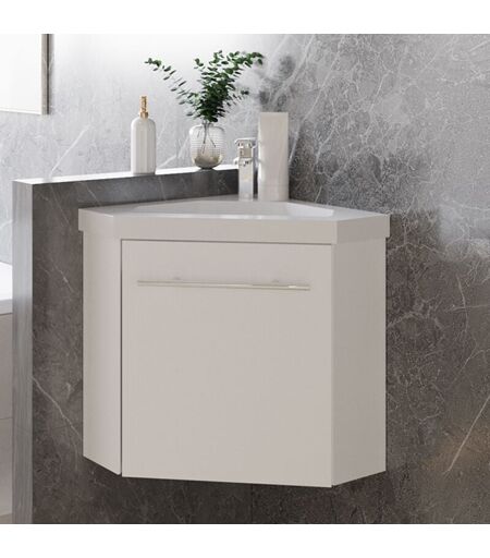 OCEAN SANITAIRE Ocean 39,5 x 39,5 x 42 cm Meuble de salle de bain blanc avec vasque, meuble d'angle en forme de diamant pentagon, porte simple