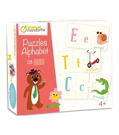 Avenue Mandarine Boîte puzzle thème alphabet 28 puzzles de 3 pièces 11 x 6 cm, bords arrondis