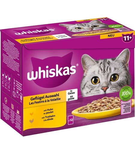 12x85g Whiskas Senior Senior 11+ Sélection de volaille en gelée - Pâtée pour chat