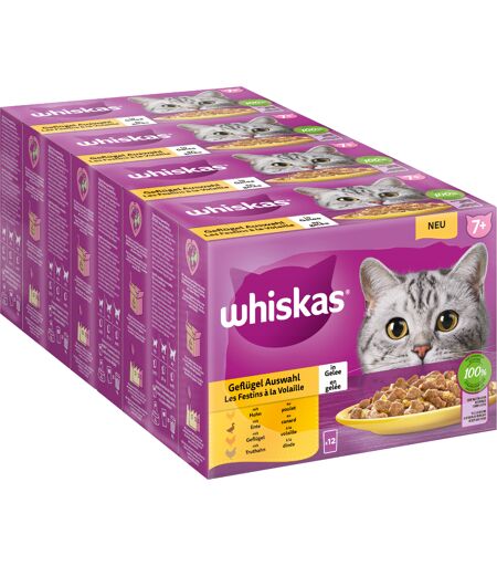 48x85g Mégapack Whiskas 7+ Senior Sélection de volaille en gelée - Pâtée pour chat