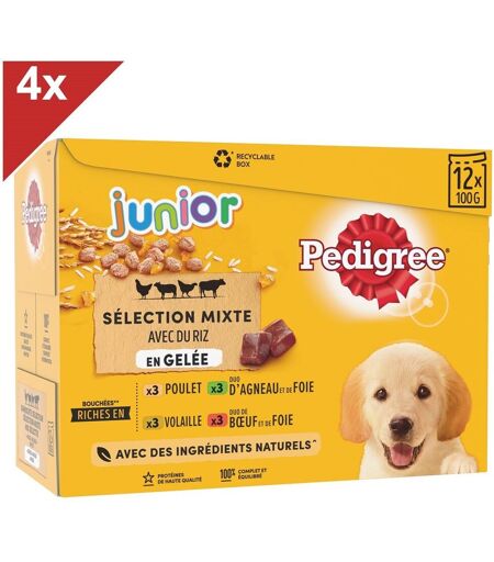 Pedigree Junior 48 Sachets Fraîcheur En Gelée 4 Variétés Pour Chiot 100g (4x12)